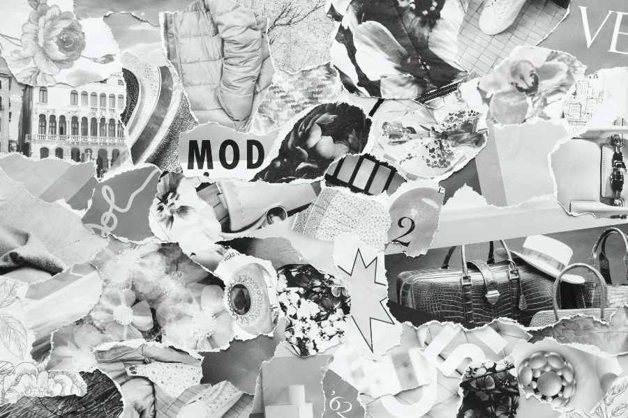 Experiment with varying sizes of images and materials to create visual interest and depth. Play with different perspectives and angles to give your collage a sense of dynamism.