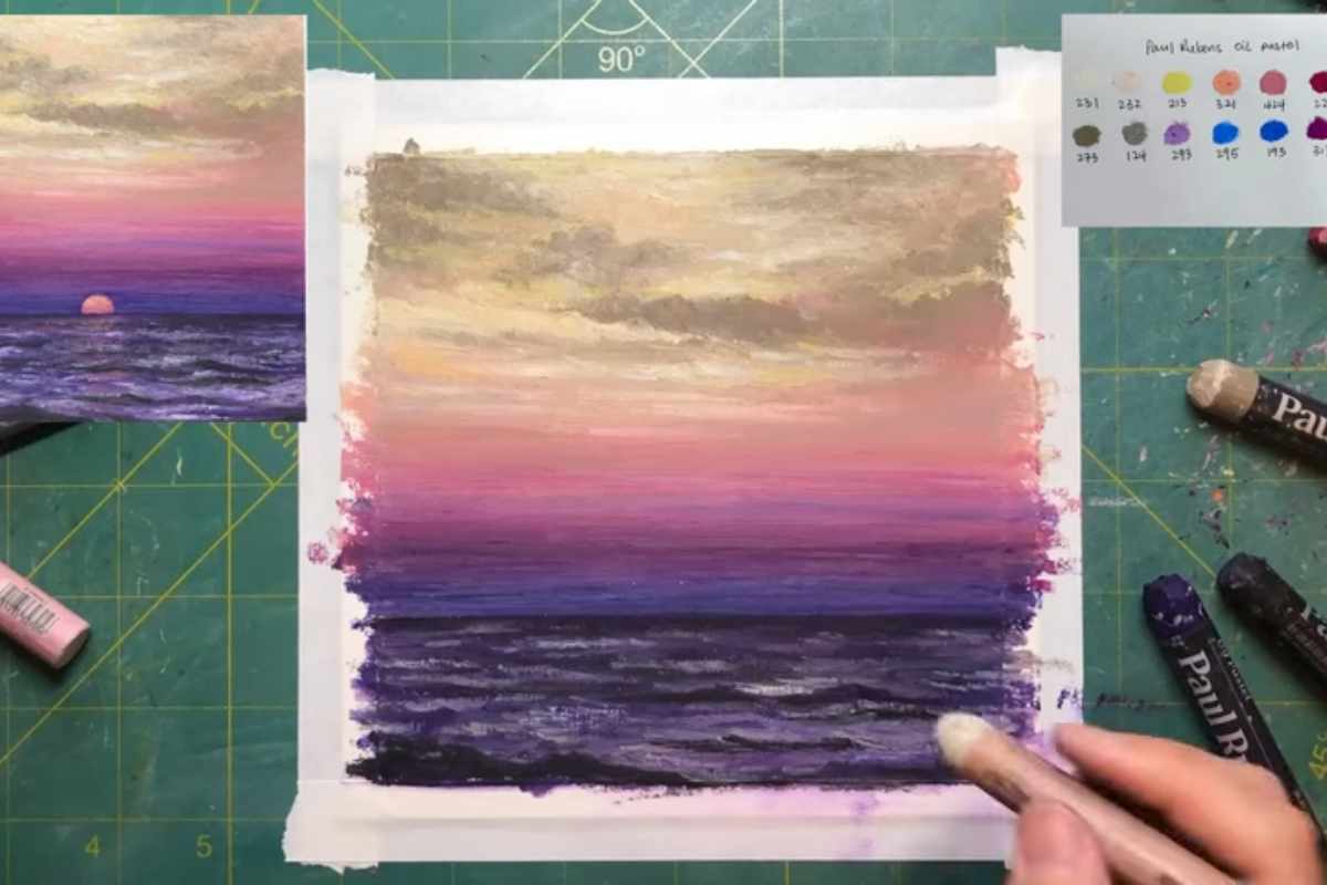Unveiling the secrets of oil pastel mastery, this tutorial encapsulates the essence of blending, shading, and capturing the essence of a serene ocean kissed by the fading light of a setting sun.